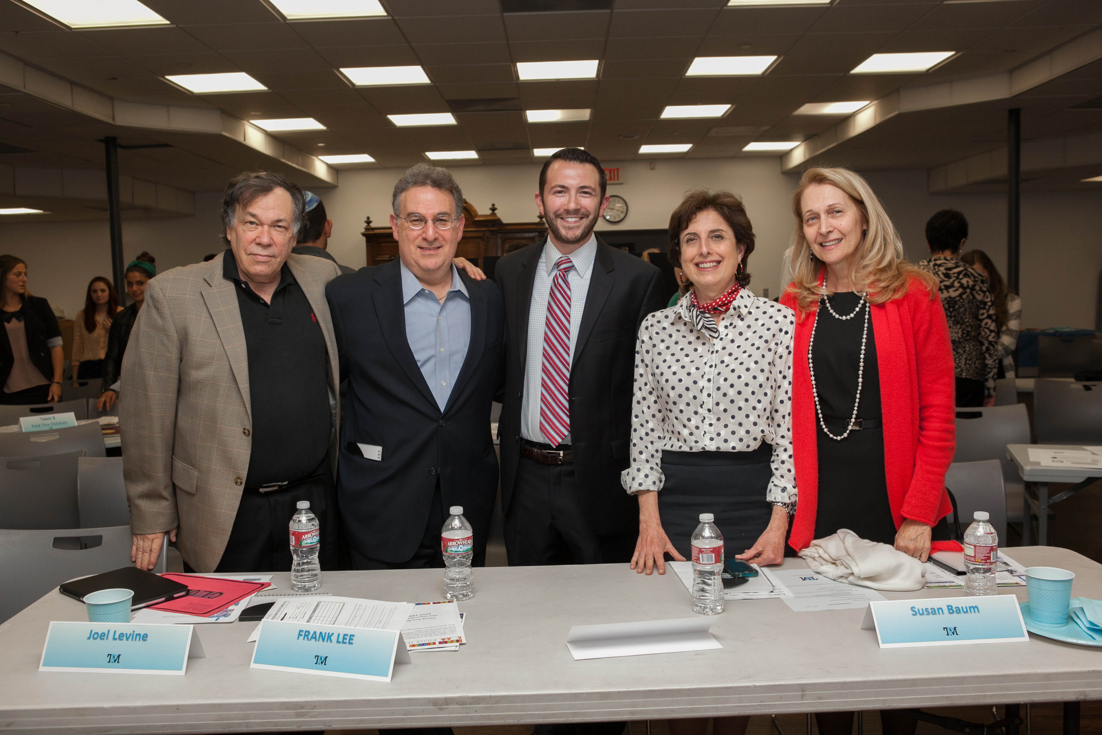 West Coast NCSY Regional Director Solly Hess, center, with the four judges (l-r): Joel Levine, Frank Lee, Leslie Kessler and Susan Baum.